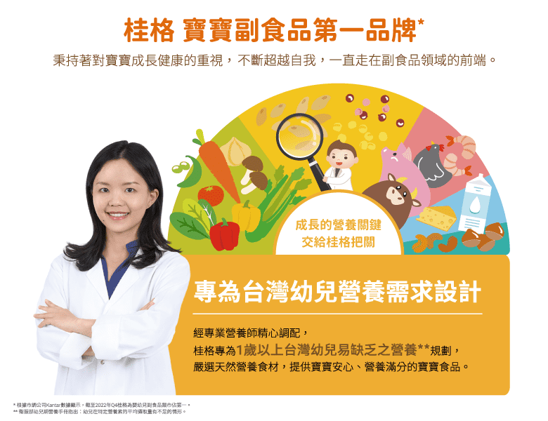桂格嬰童,將所有寶寶的健康當做首要任務,將秉持著”致力追求好營養”的企業精神,積極的在專業營養設計與美味上精益求精。為媽媽與各月齡階段、各類型體質的寶寶提供最佳的營養選擇。
