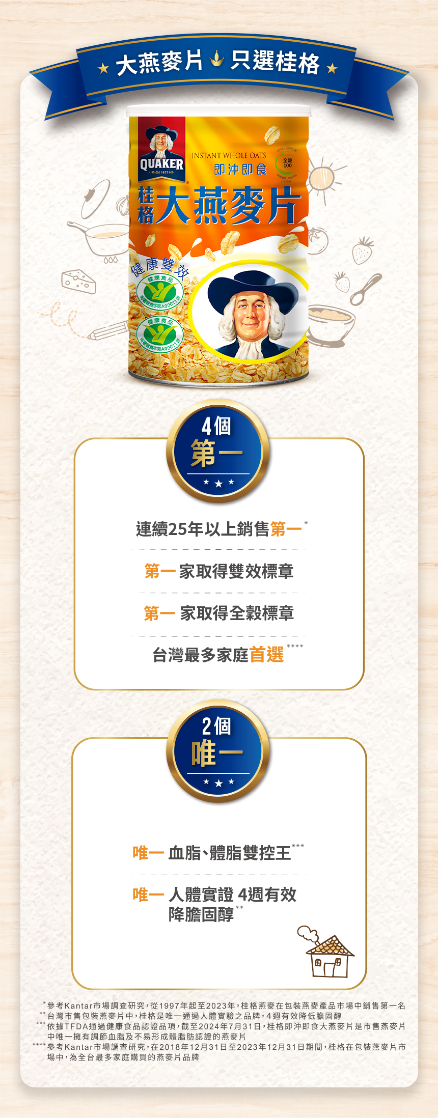 桂格即沖即食大燕麥片薄片有濃濃的麥香,同時細緻順口,易咀嚼、好吞嚥,適合年長者及小孩食用